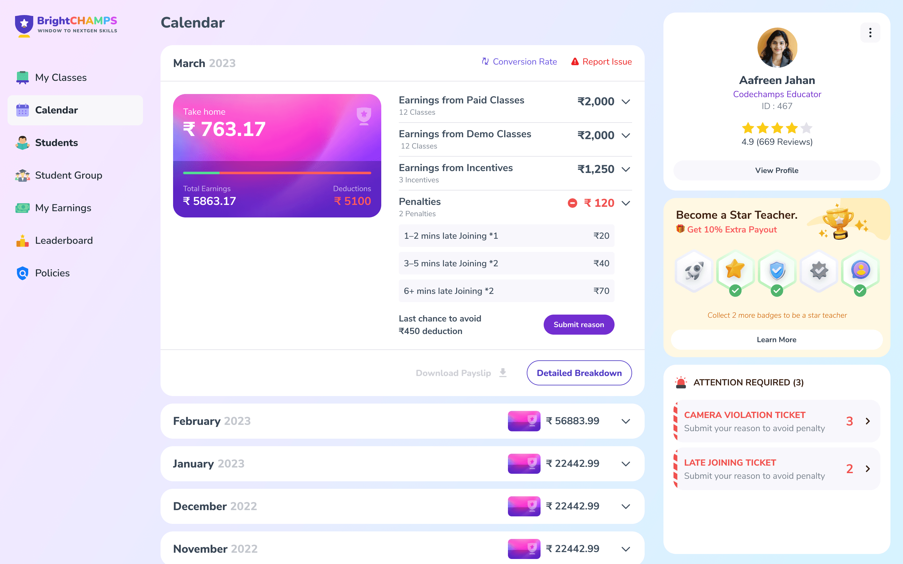The Teacher Dashboard is a core product used by instructors at BrightCHAMPS to manage classes, track students, and perform post-class activities.