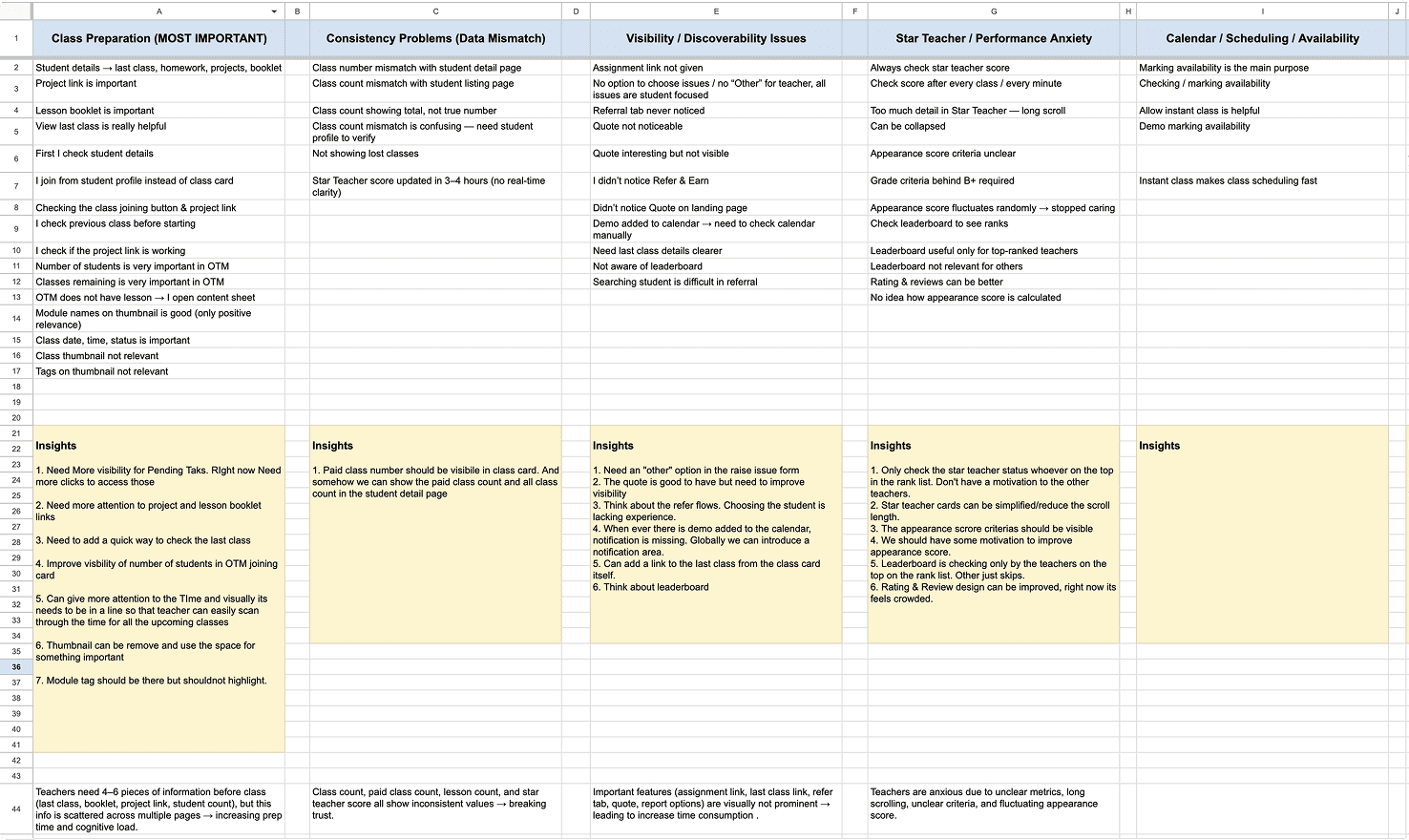 Teachers shared how they prepared before classes, what slowed them down, and where the dashboard failed to support their workflow—especially during high-pressure moments like back-to-back sessions.